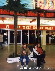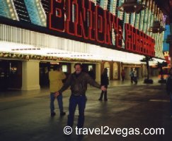 I took this picture of Dan in front of Binion's after his first winning blackjack session of the trip. He was a happy guy!