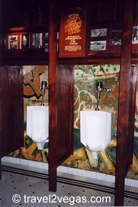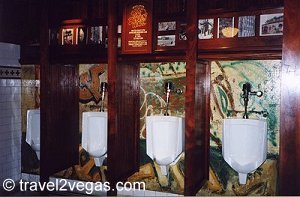 I had Dan go into the Men's Restroom by the buffet to take these pictures of the Berlin Wall. Yes, that's an actual piece of the wall behind those urinals!