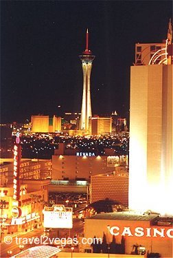 This last picture is my favorite. It's a picture of the first room of our trip at Main St. Station to the last room of our trip at Rio! That's it just to the left of the last red neon strip on the right, 17 floors up!